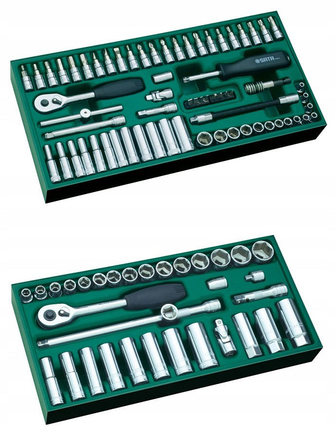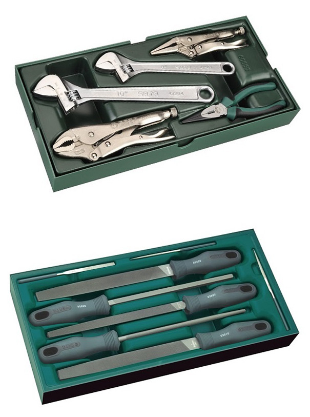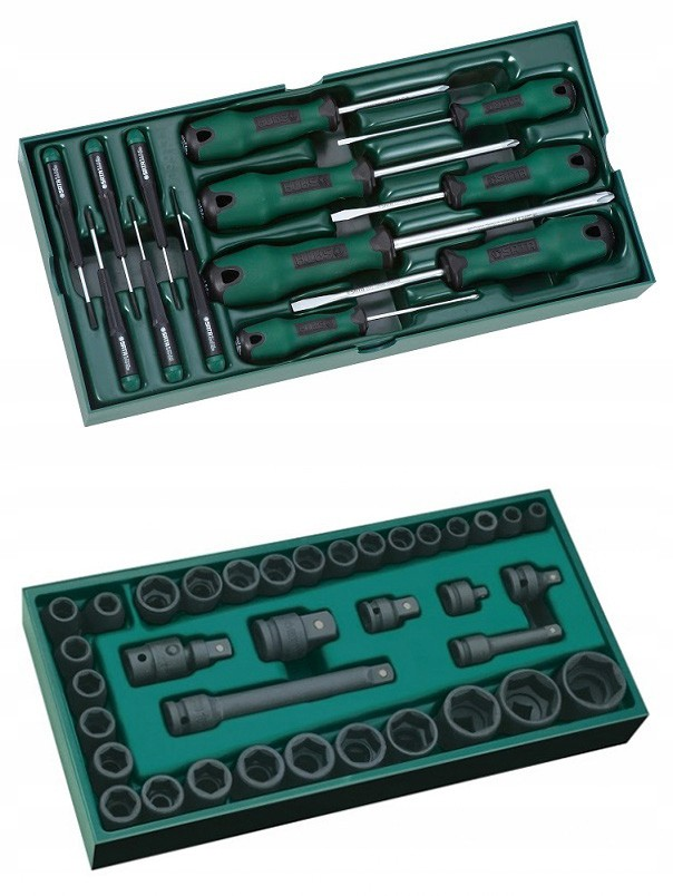 Wózek posiada 7 szuflad z których pięć górnych mieści 15 dopasowanych wkładek z 299 narzędziami, Narzędzia umieszczone są we wkładkach idealnie mieszczących się w szufladach i posiadających wytłoczenia na narzędzia gwarantujące porządek i szybki dostęp do wybranego elementu. Każda szuflada wyposażona jest w wygodny aluminiowy uchwyt do otwierania z możliwością zastosowania opisu zawartości. Nowoczesny design wózka uzyskano dzięki zastosowaniu dodatkowej, zamykanej na zamek, bocznej półki na śrubokręty, nowych listw wykończeniowych na szufladach, gumowej powłoki stołu roboczego nowego centralnego zamka ze wskazaniem otwarty / zamknięty.