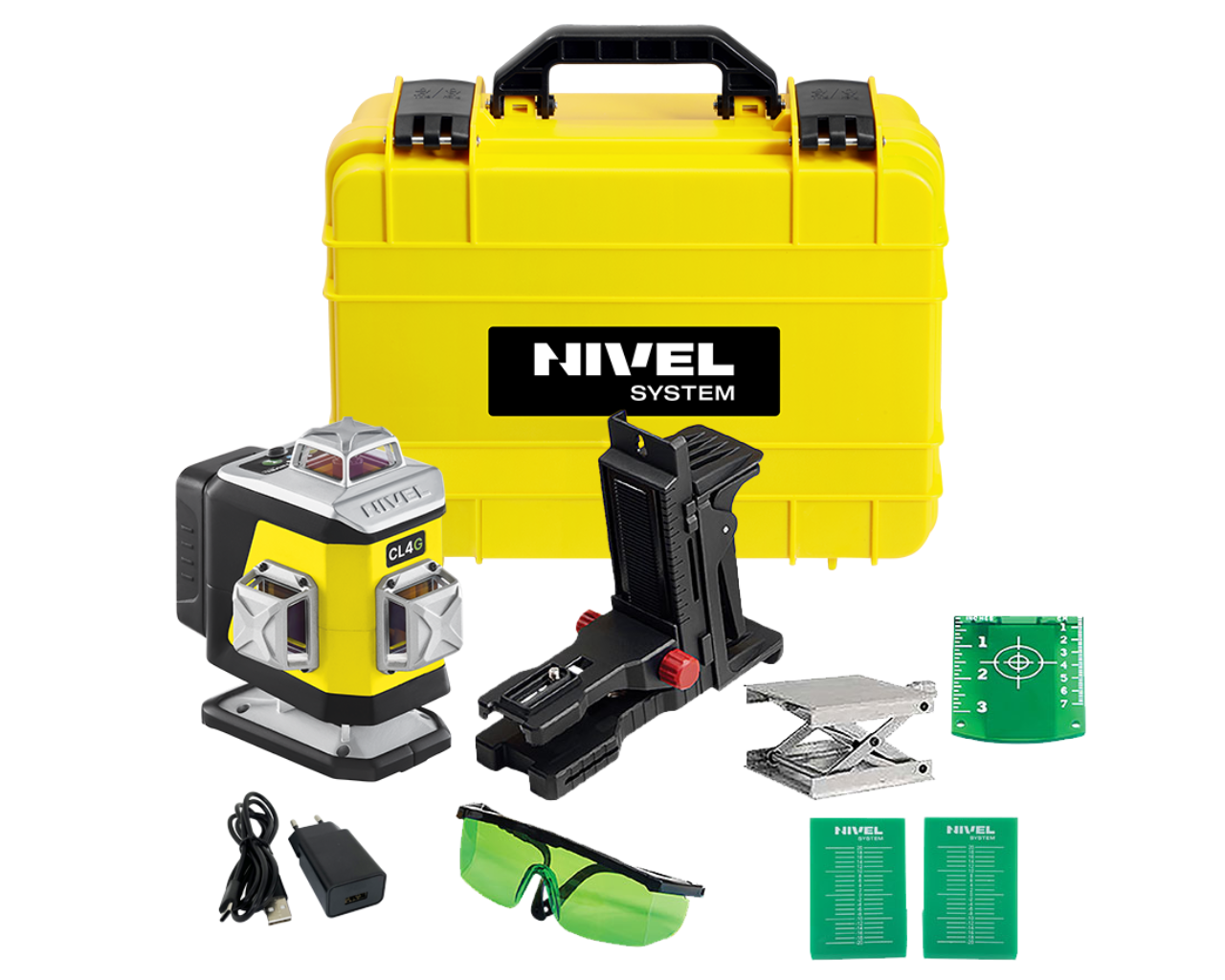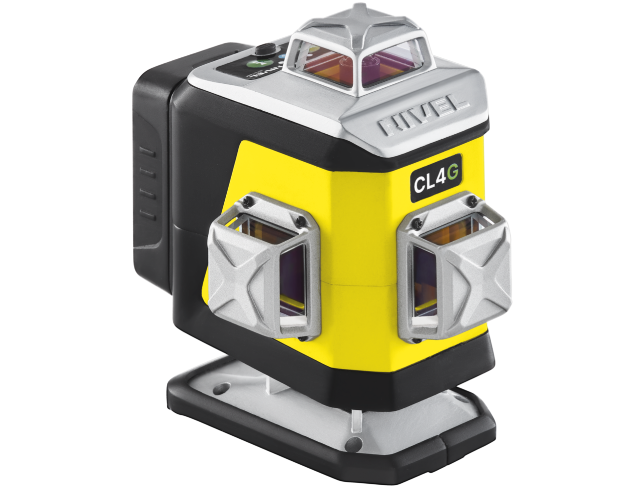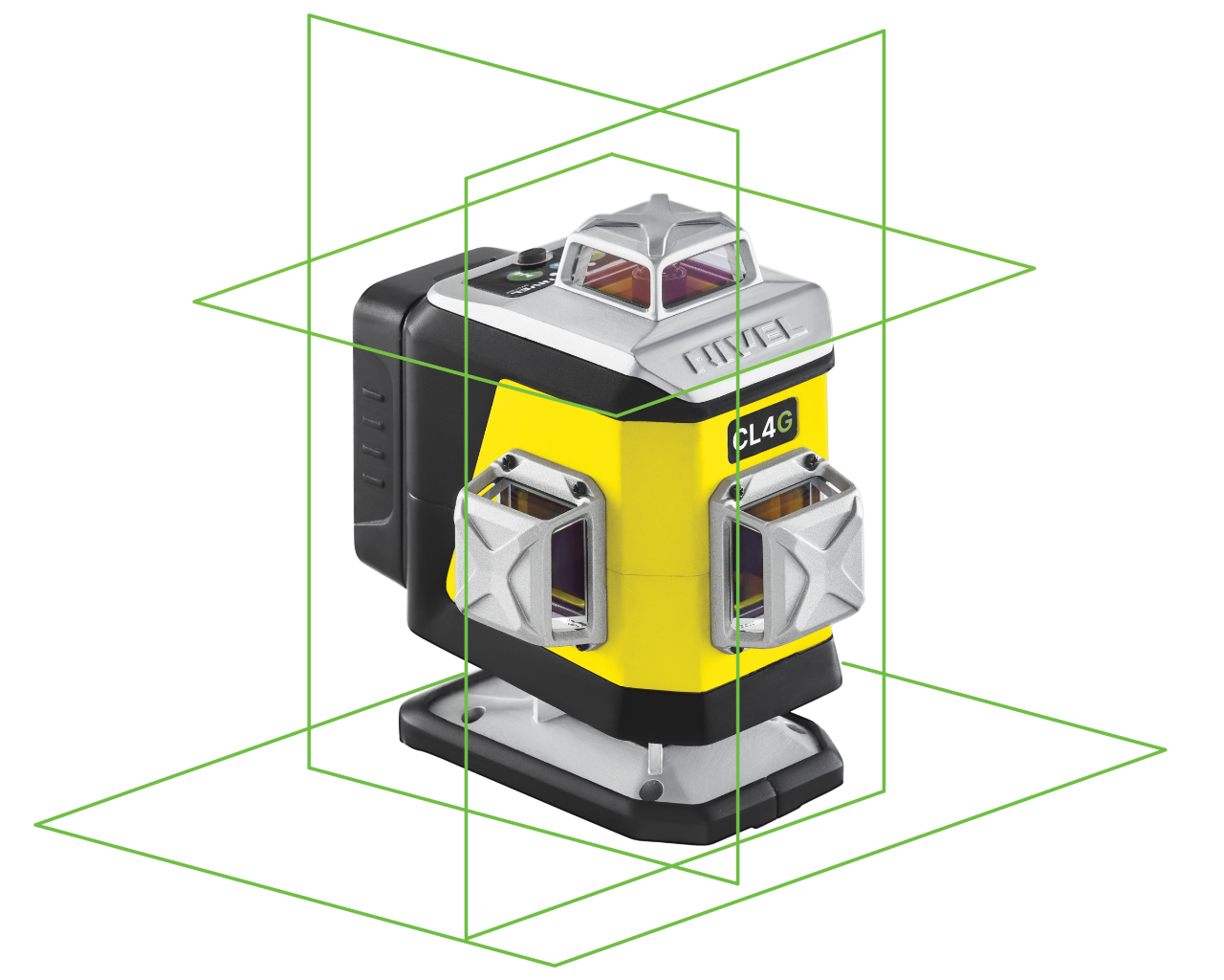 Nivel System CL4G to wielozadaniowy laser krzyżowy. Sprzęt wyznacza na ścianie idealnie spoziomowane linie odniesienia (poziome i pionowe), które wspierają wszelkie prace wykończeniowe i ogólnobudowlane. Laser posiada 4 głowice laserowe, dzięki czemu użytkownik ma możliwość pracy z czterema płaszczyznami laserowymi – w zakresie 360° każda. Jednoczesne wyświetlenie tych płaszczyzn umożliwia określanie kąta prostego. Zablokowanie kompensatora sprawia, że instrument można pochylać i korzystać z linii skośnych. Wbudowany gwint statywu umożliwia pewne i stabilne mocowanie instrumentu na statywie, adapterze czy półce laserowej. Wzmocnione elementy obudowy lasera chronią przed uszkodzeniami wskutek uderzeń i wstrząsów.