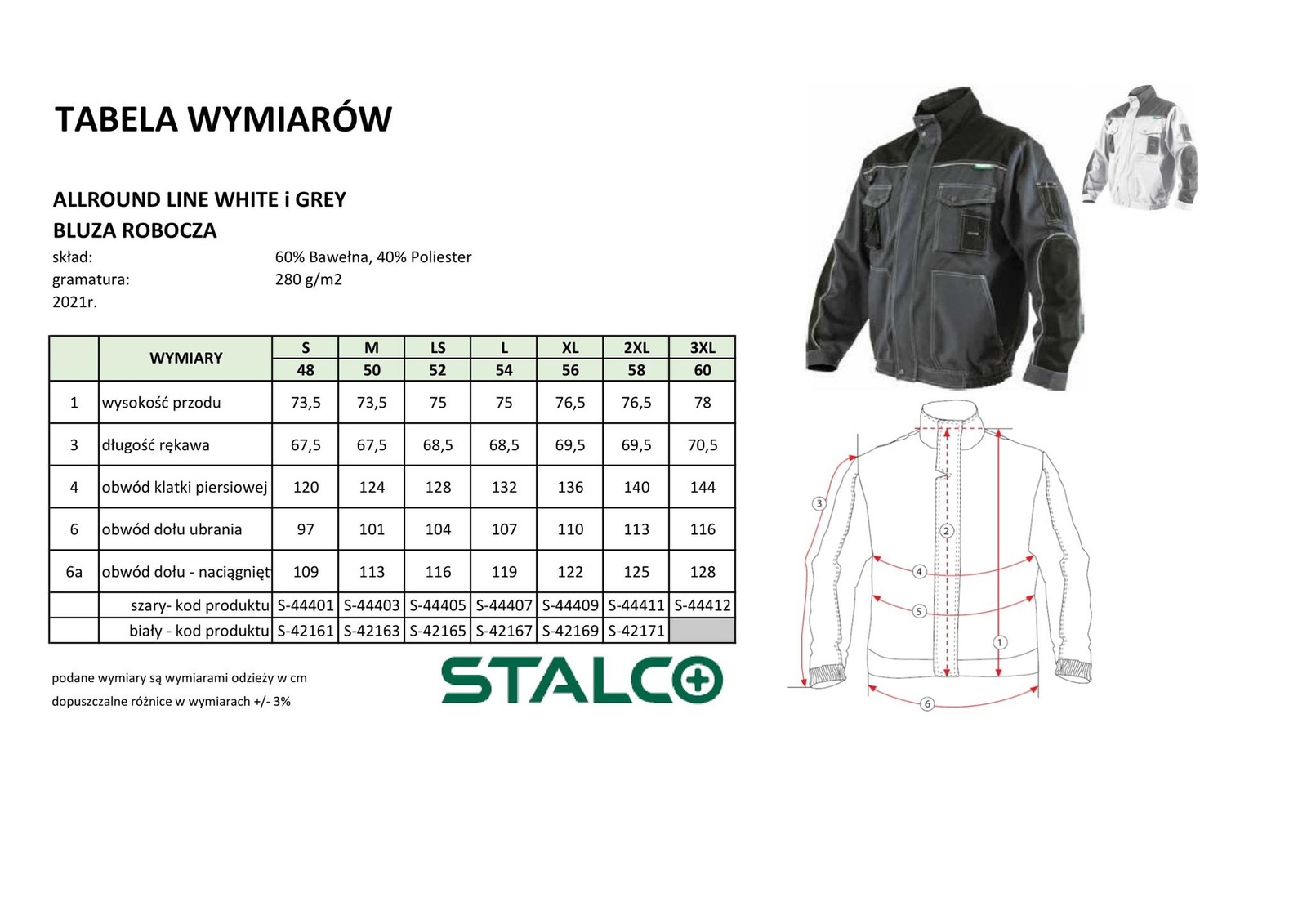 Elementy odblaskowe Dla poprawy widoczności pracownika, bluzę wyposażono w elementy odblaskowe i kontrastujące. Wstawki i wypustki umieszczono w okolicach barków, rękawów i pasa.