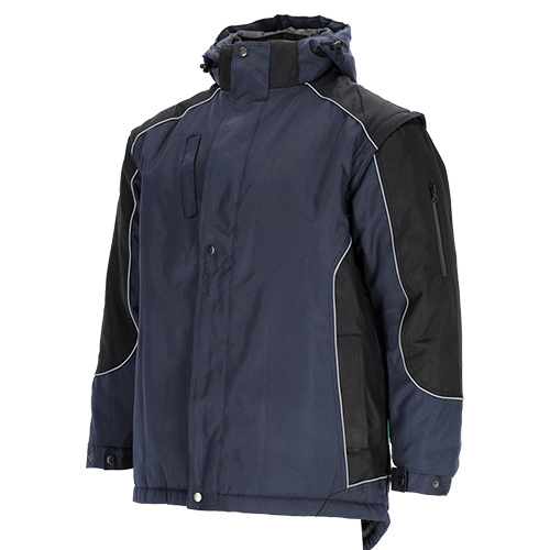 KURTKA ROBOCZA PETER to profesjonalna zimowa odzież robocza. Została wykonana z myślą o zapewnieniu komfortu termicznego, a także bezpieczeństwa w czasie pracy. Należy do odzieży ocieplanej i została wykończona pikowaną podszewką z poliestru. Tkanina zewnętrzna zapewnia ochronę przed wiatrem i deszczem, a także zagrożeniami typowymi dla pracy w przemyśle. Kurtka ma uniwersalny krój i sprawdza się w wielu dziedzinach przemysłu. Ciepła i bardzo wytrzymała kurtka, znajduje zastosowanie przede wszystkim w budownictwie i w pracach na zewnątrz, nawet w bardzo trudnych warunkach atmosferycznych. Można zastosować ją również przy pracach ochroniarskich czy logistycznych. Ma elementy kontrastujące poprawiające widoczność. Ponadto można założyć na nią kamizelkę odblaskową, co jeszcze rozszerzy zakres zastosowania.