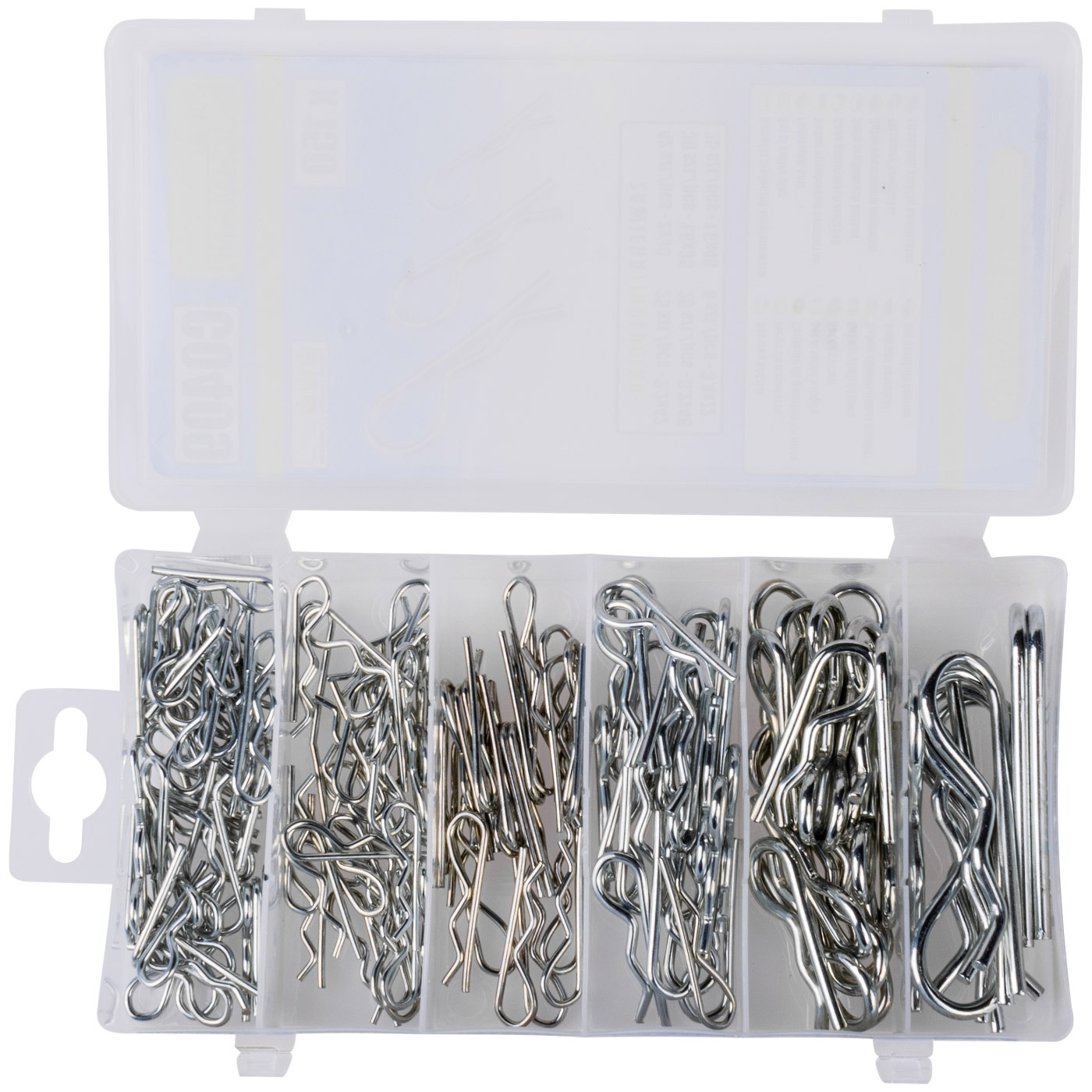 Zestaw 150 sztuk zawleczek sprężynowych.