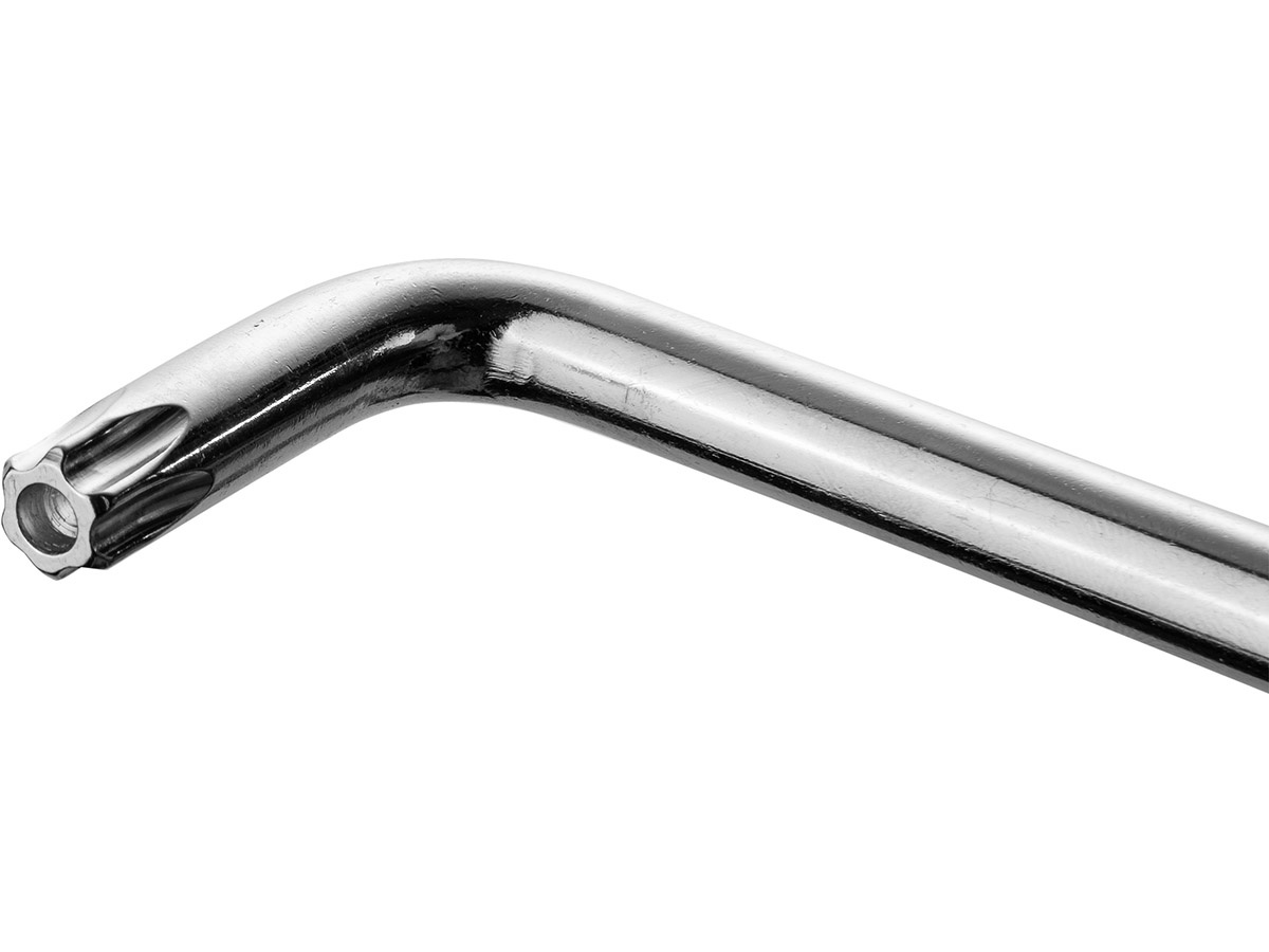 Zestaw 9 sztuk dwustronnych kluczy trzpieniowych TORX z otworem w rozmiarach od T10 do T50.