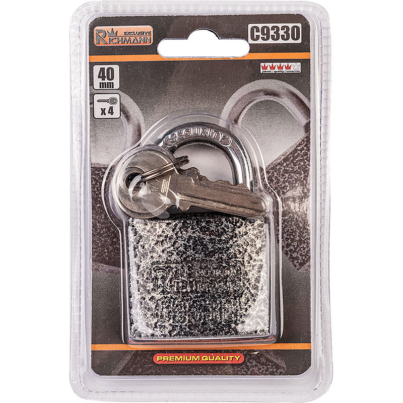 Wykonana ze stali czarna kłódka zatrzaskowa z uszczelkami.