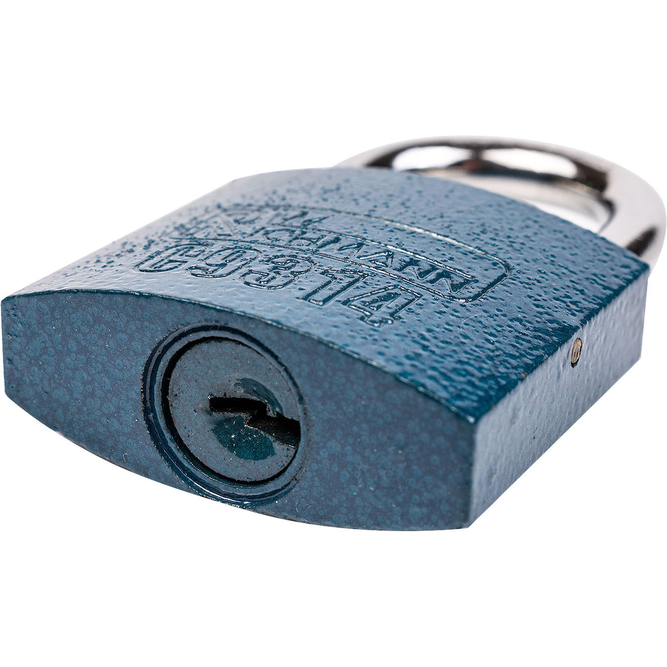 Wykonana ze stali kłódka zatrzaskowa.