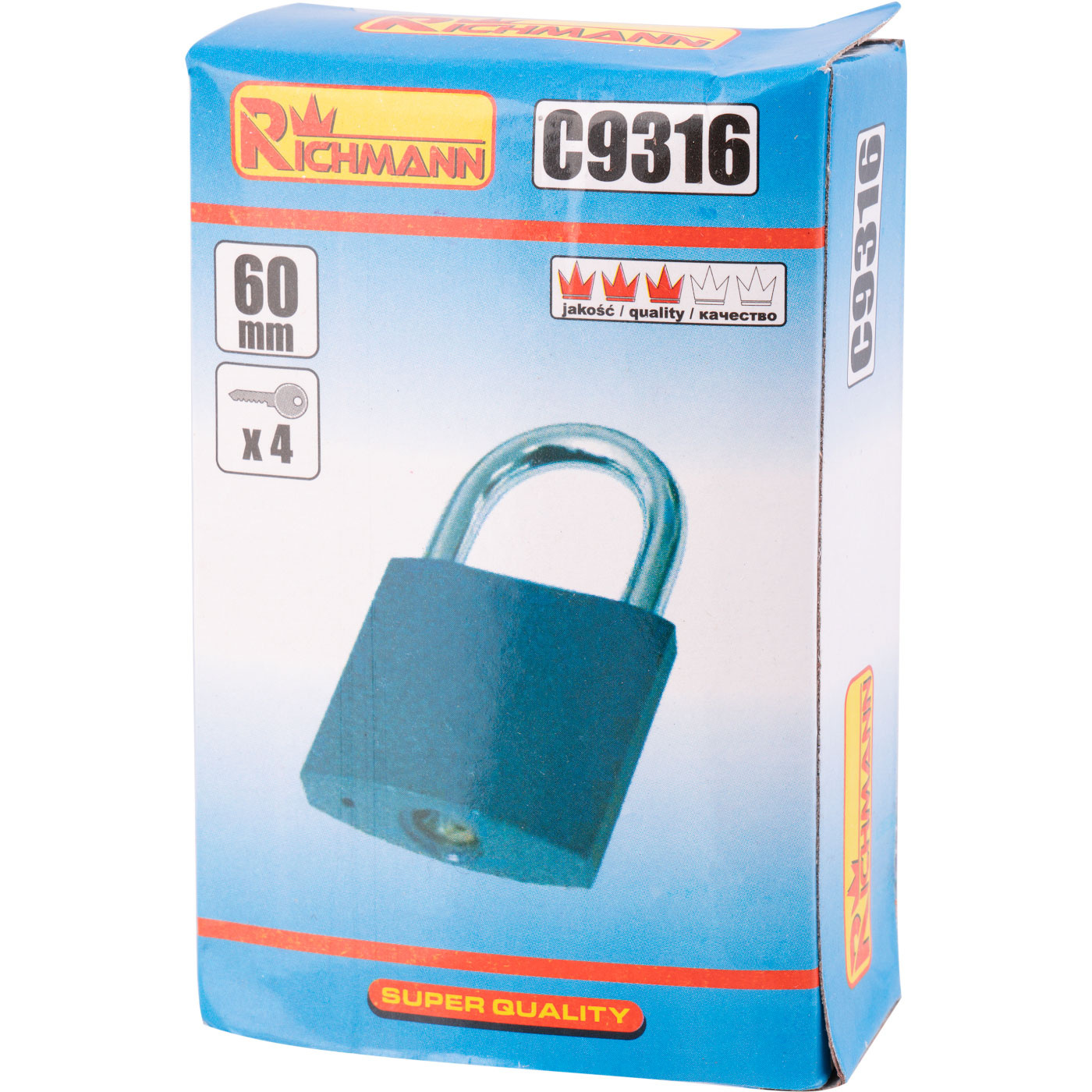 Stalowa kłódka zatrzaskowa o rozmiarze 60 mm.