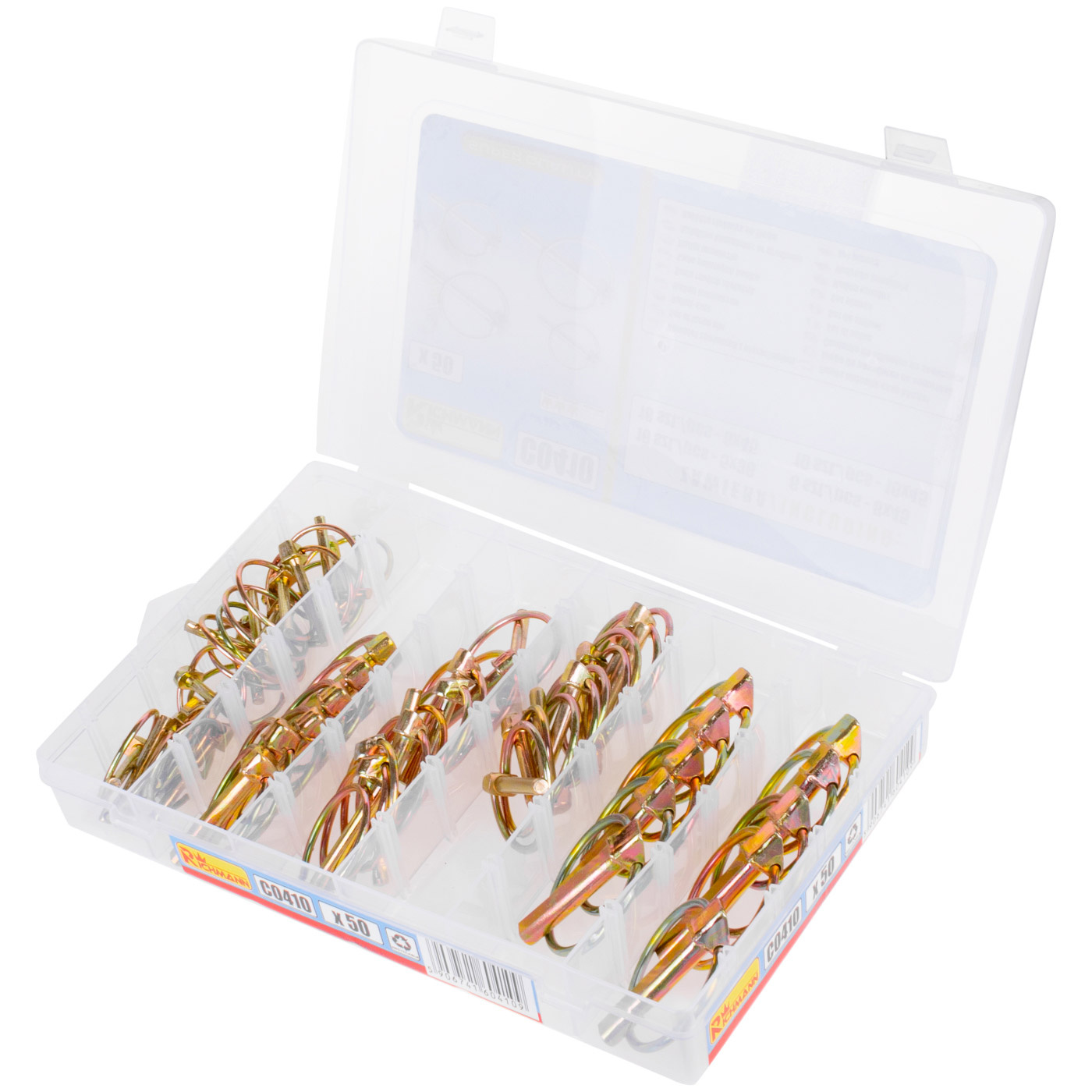 Zestaw 50 sztuk zawleczek z pierścieniem.