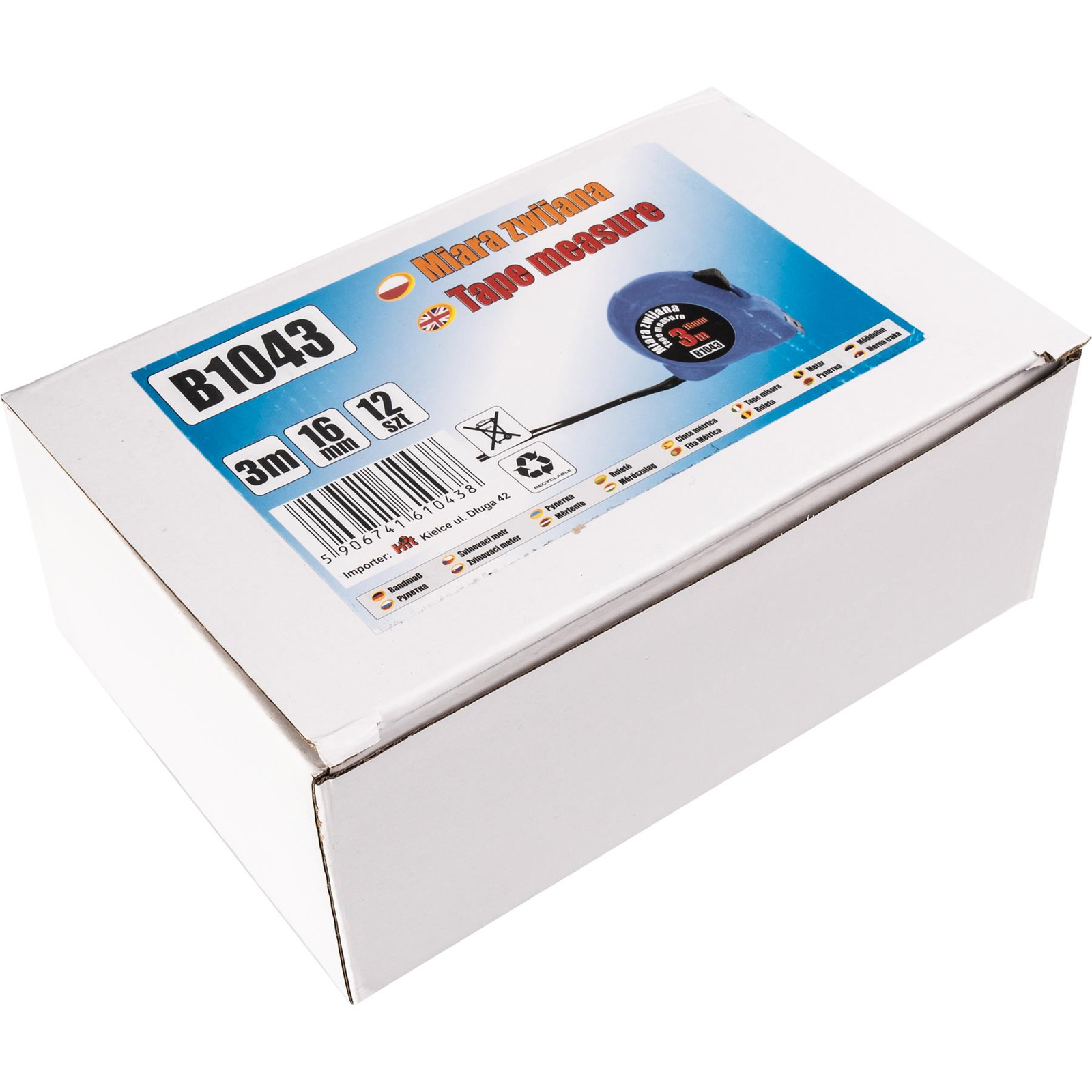 Zestaw 12 sztuk miar zwijanych o długości 3m.