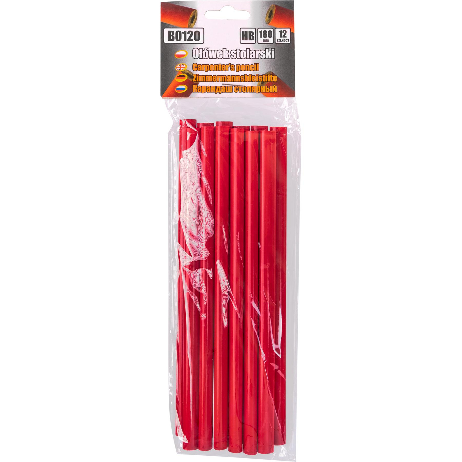Zestaw 12 sztuk ołówków stolarskich o długości 180 mm.