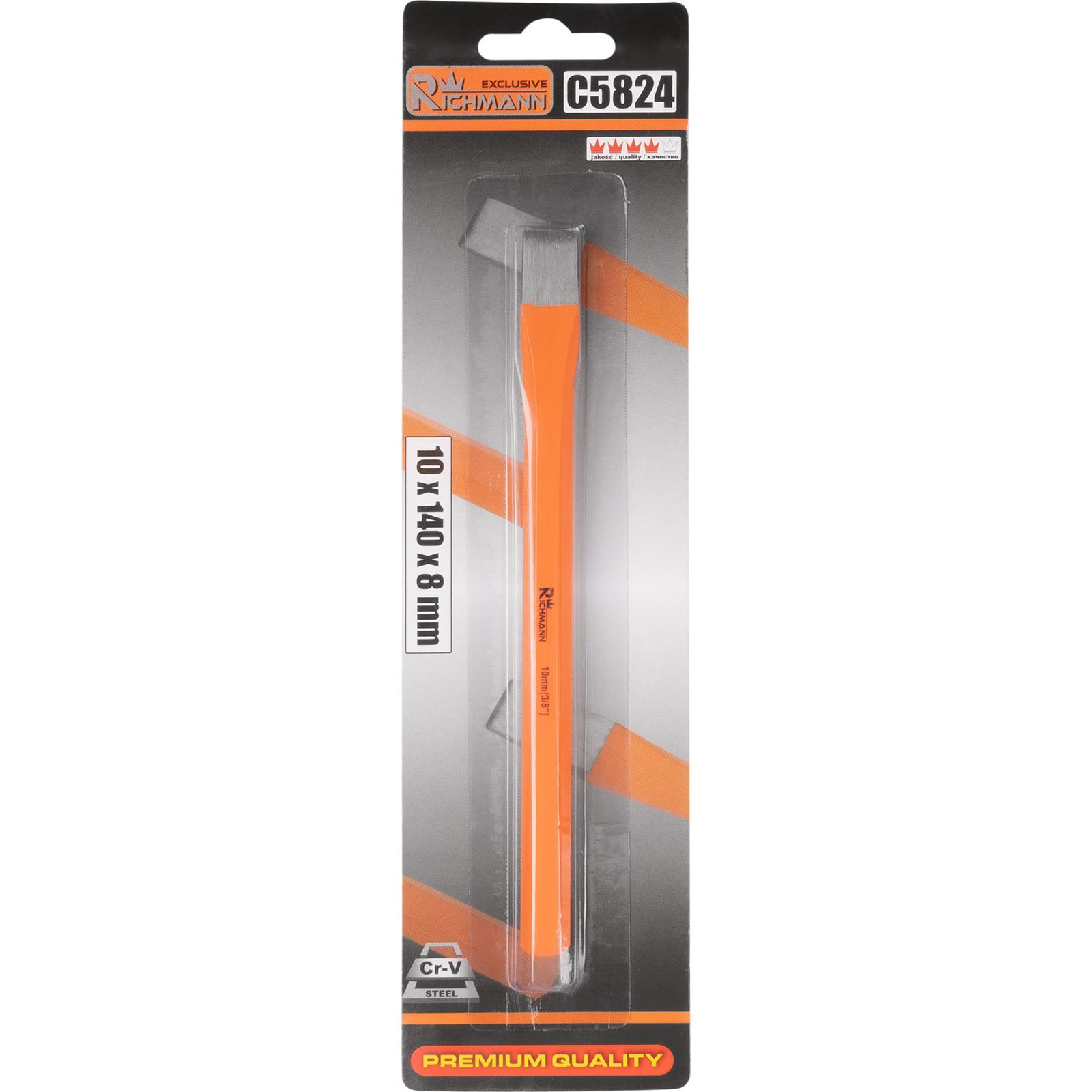 Przecinak ślusarski o wymiarach 10 x 140 x 8 mm.