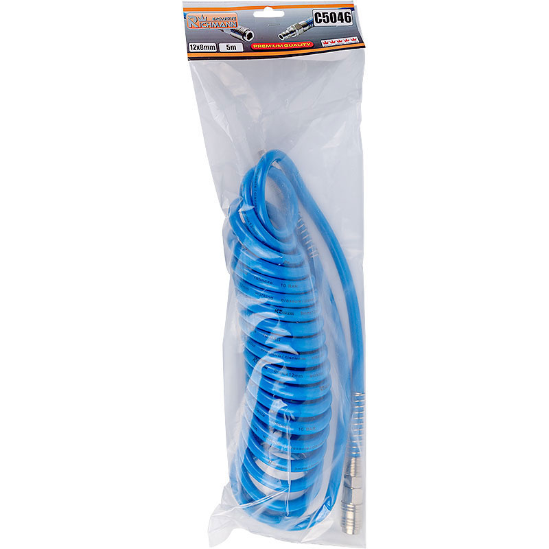 Spiralny wąż ciśnieniowy pneumatyczny o średnicy 8x12 mm.