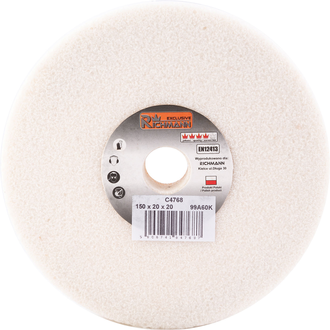 Ceramiczna ściernica szlifierska biała o wymiarach 150 x 20 x 20 mm.