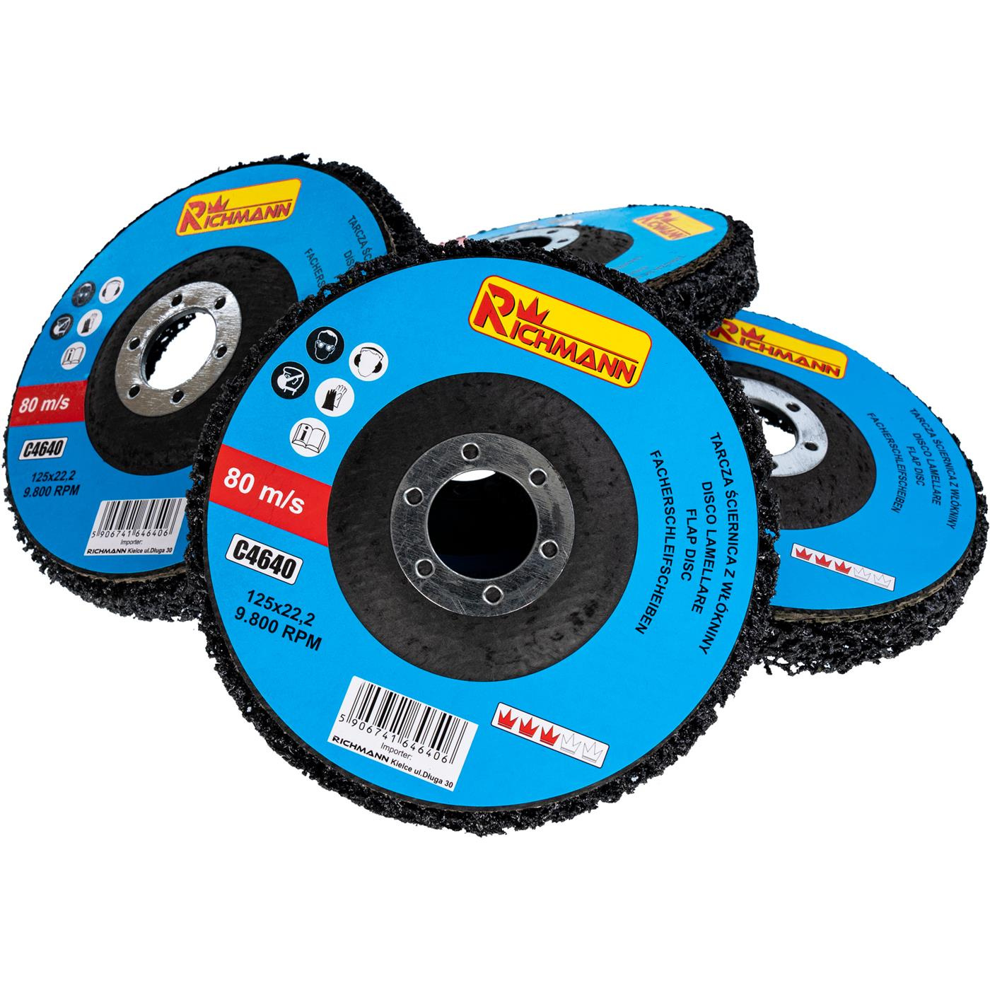 Zestaw 5 szt. tarcz ściernych z włókniny o średnicy 125 mm.
