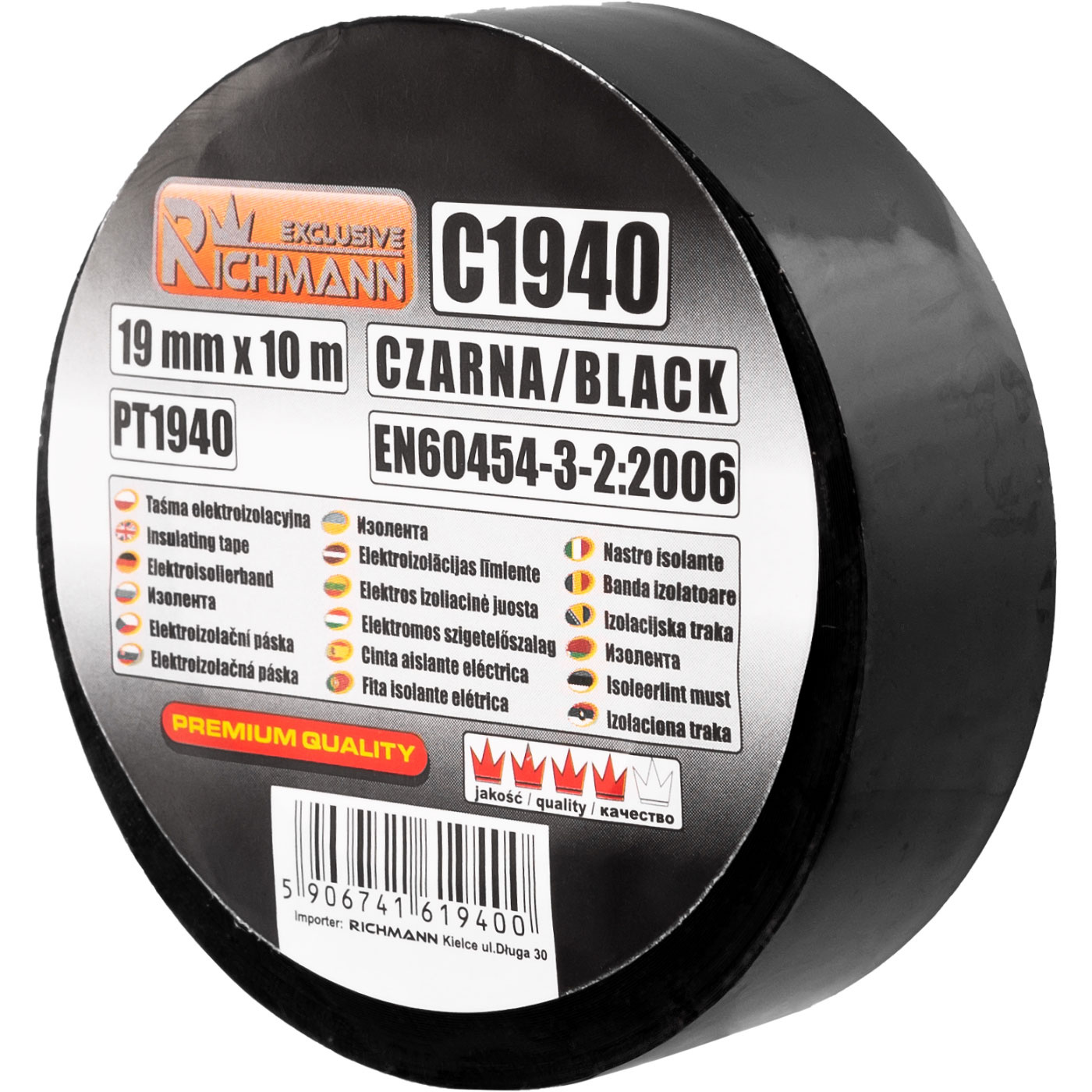 Zestaw 10 szt. taśm elektroizolacyjnych czarnych o wymiarach 19 mm x 10 m.