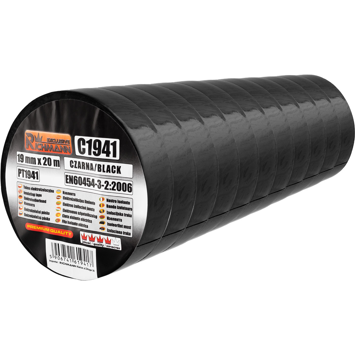 Zestaw 10 szt. taśm elektroizolacyjnych czarnych o wymiarach 19 mm x 20 m.
