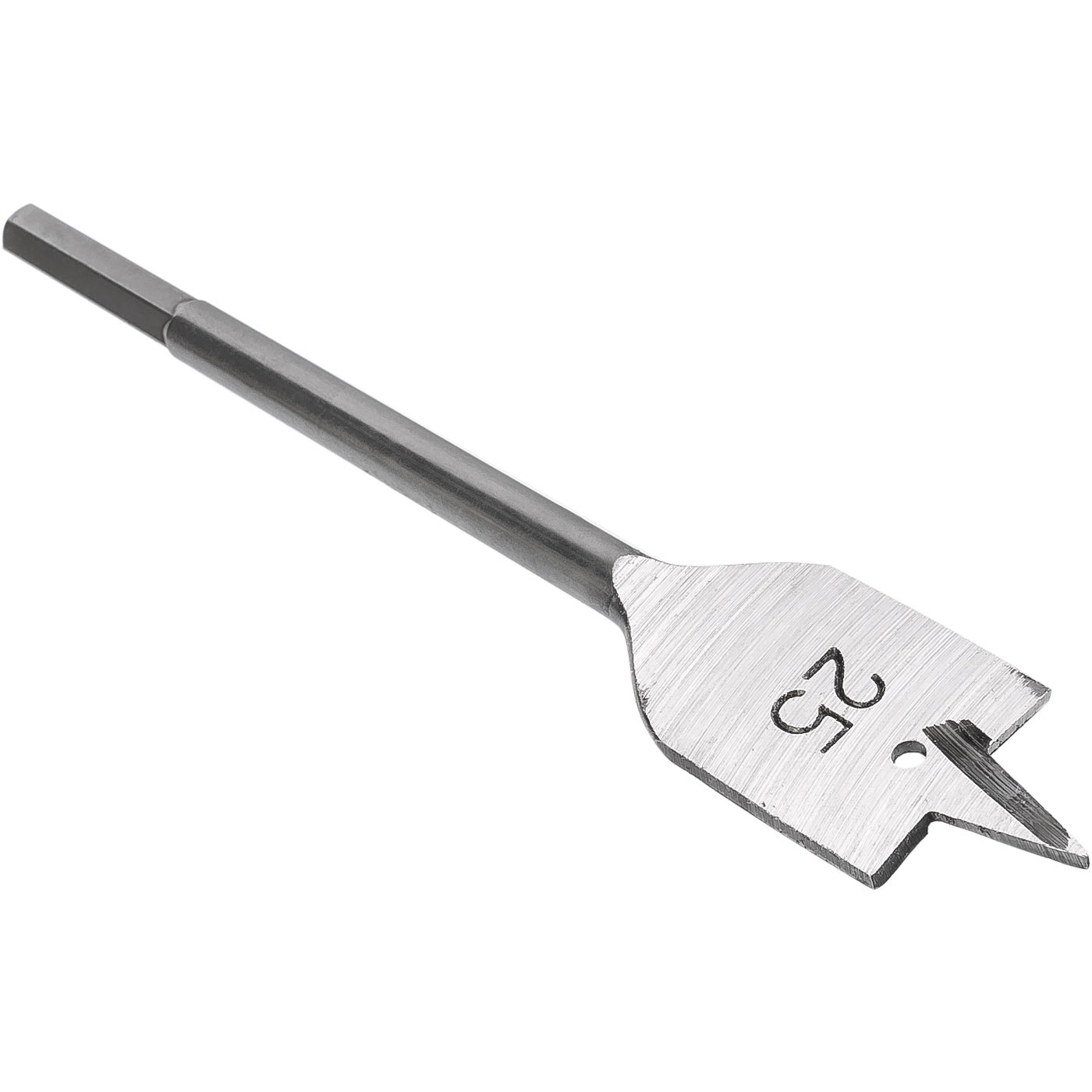 Wiertło łopatkowe posiada spłaszczone ostrze oraz dwie proste krawędzie skrawające.