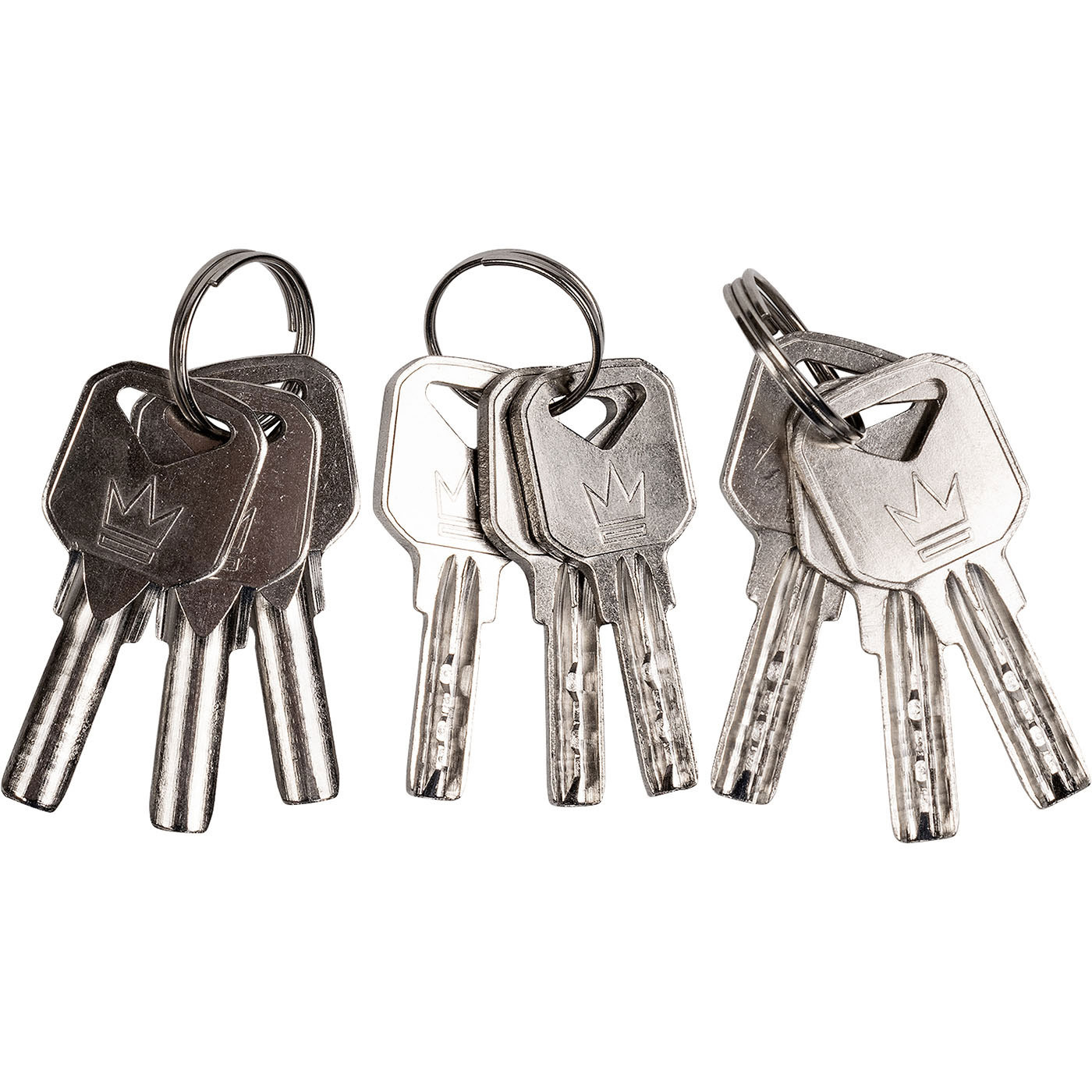 W zestawie 3 komplety kluczy po 3 sztuki każdy z oczkiem.