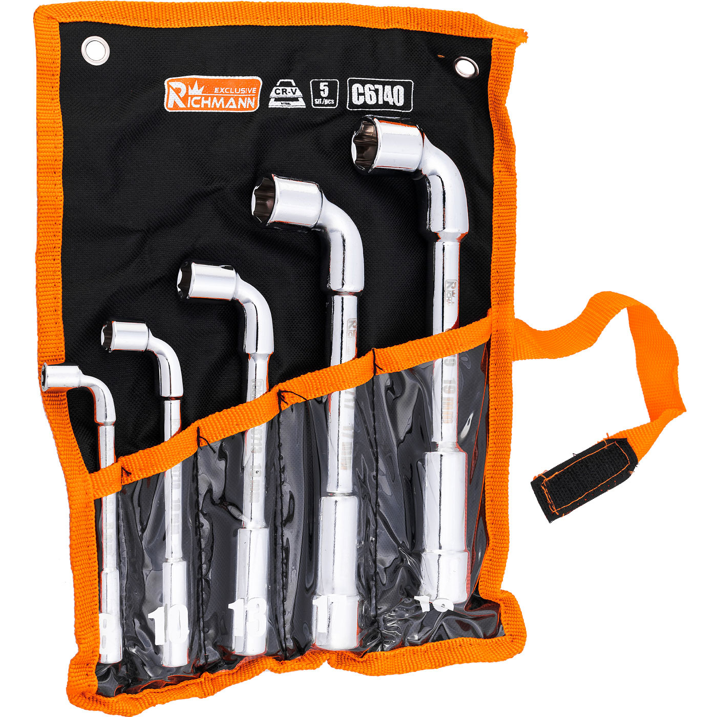 Zestaw 5 sztuk dwustronnych kluczy sześciokątnych, fajkowych typu „L” w zakresie rozmiarów: 8 - 19 mm.