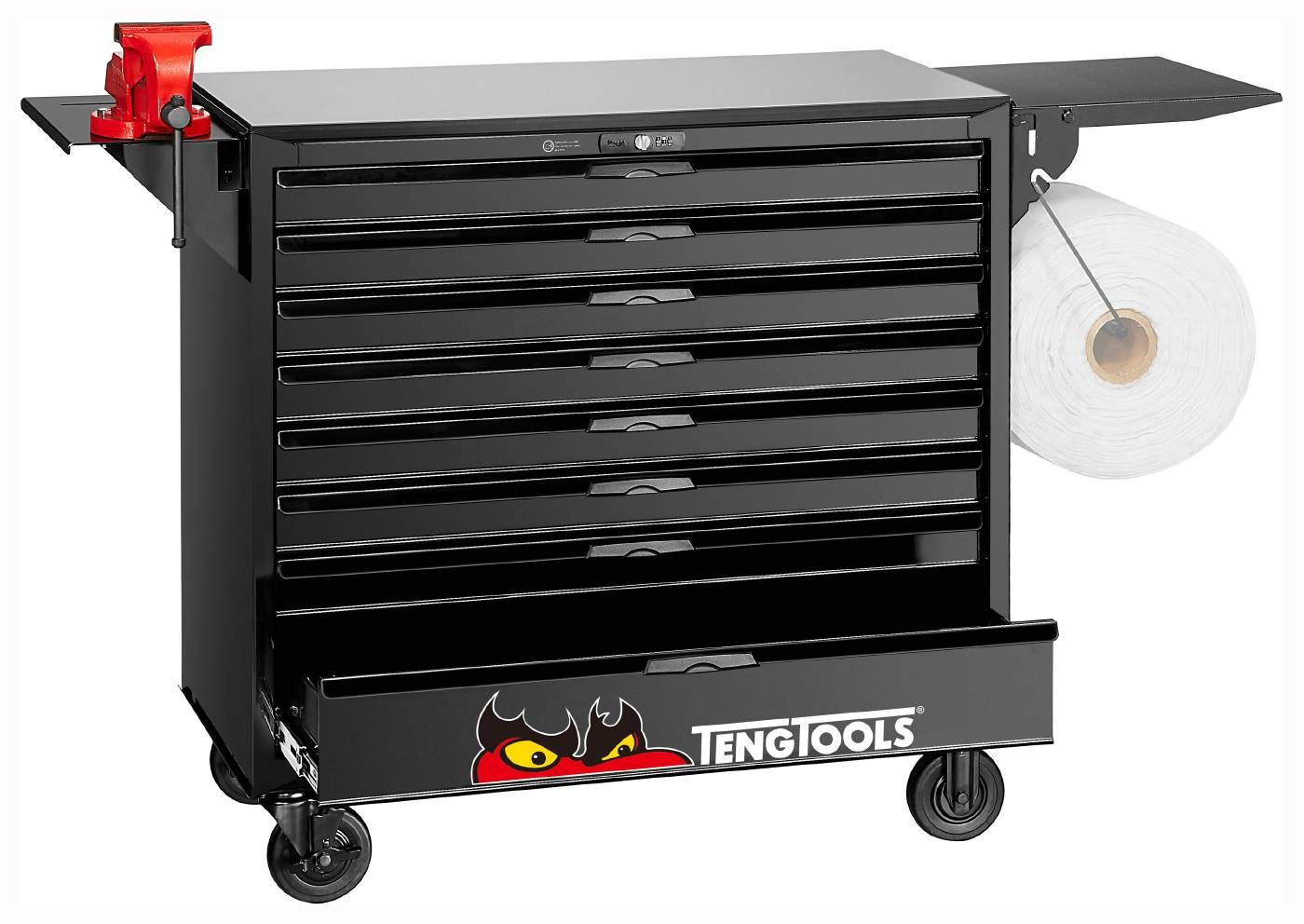 Kompletny zestaw narzędzi spełniający większość wymagań użytkowników. Wszystkie narzędzia są ułożone w zasobnikach z tworzywa, przy czym każde narzędzie ma swoje własne miejsce. Zestaw zawiera 1004 elementy. Dostarczany w wózku narzędziowym TCW208NBK1 z 8 szufladami, z blatem roboczym, półką boczną z imadłem i uchwytem na papier. Papier nie jest na wyposażeniu.